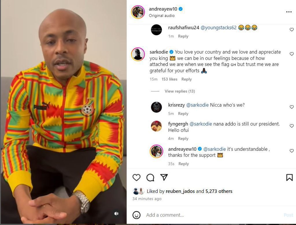In response, Sarkodie sent encouraging remarks on Instagram, praising Ayew’s efforts and recognising his commitment to the national squad.