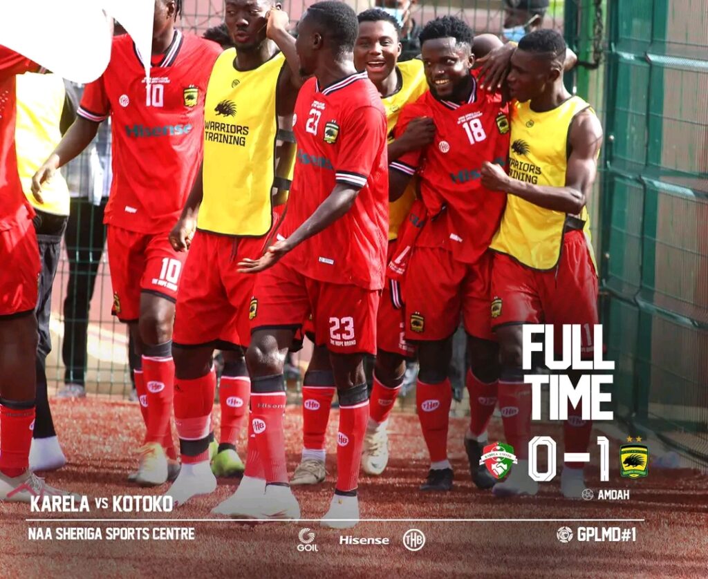 Asante Kotoko takes the win their 2024/2025 Ghana Premier League campaign with a 1-0 victory over Karela United at the Naa Sheriga Sports Centre in Nareligu on Sunday.