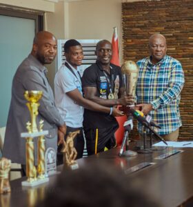 The Black Challenge players and technical team paid a courtesy call on former President John Dramani Mahama to present the Amputee Africa Cup of Nations (AAFCON) trophy.