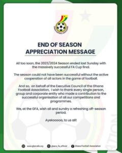 “We, at the GFA, wish all and sundry a refreshing off-season period.