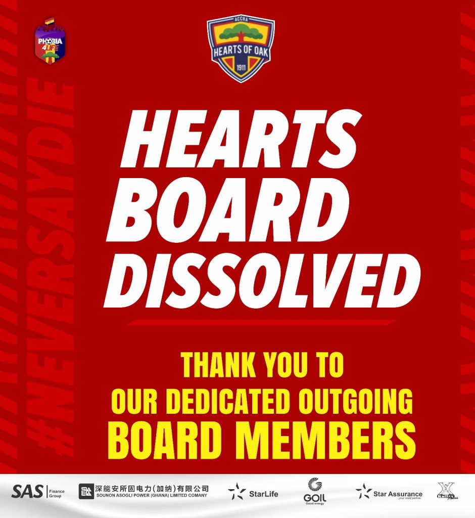 Hearts of Oak has announced the dissolution of its board of directors, a statement on Tuesday, 27 February 2024 disclosed.