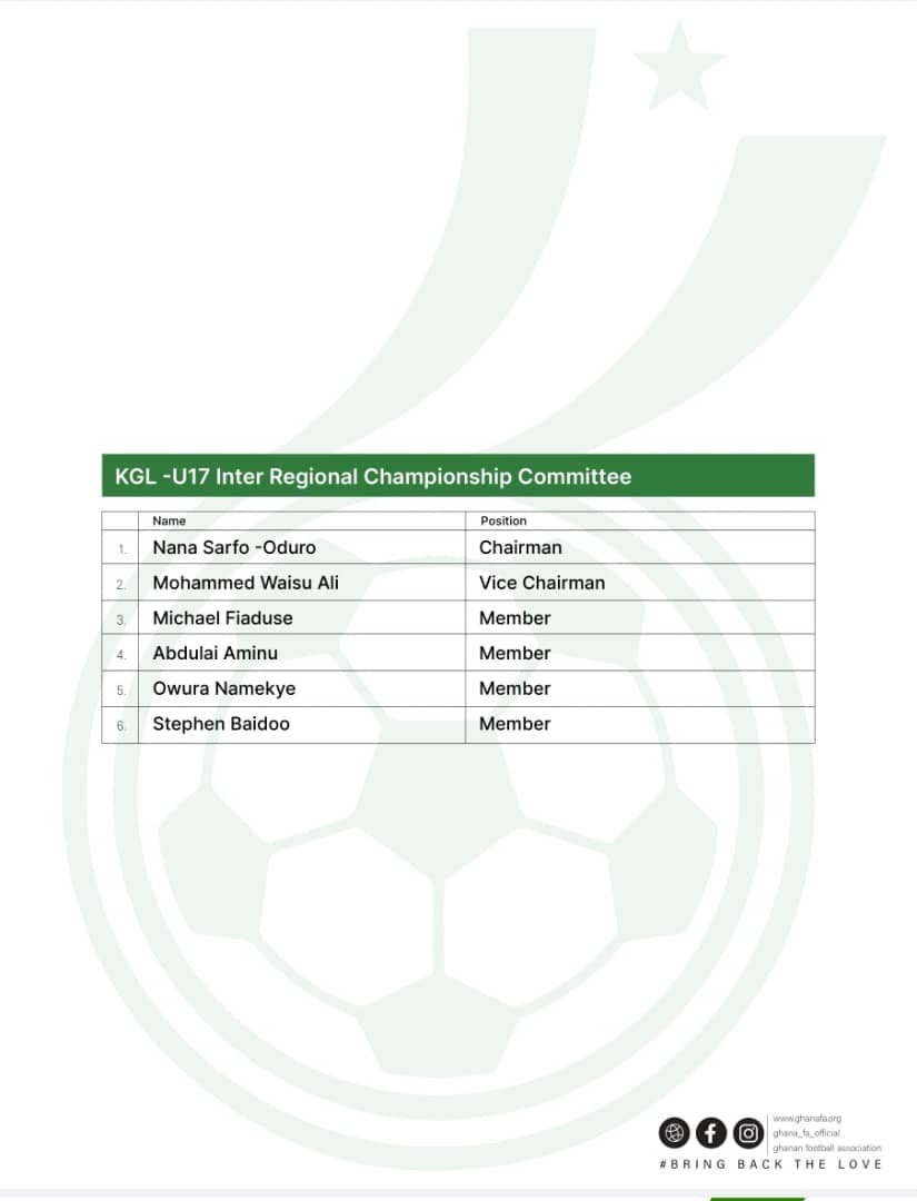 Executive Council member of the Ghana FA – Nana Sarfo Oduro – has been retained as Chairman of the planning Committee for the KGL Foundation U-17 Inter Regional Championship. The Berekum Chelsea Director is tasked to ensure the successful planning and organization of the championship.