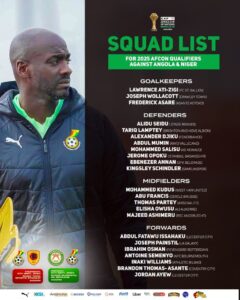 Coach Otto Addo has announced Black Stars squad for the 2025 Africa Cup of Nations (AFCON) qualifying opening games today.